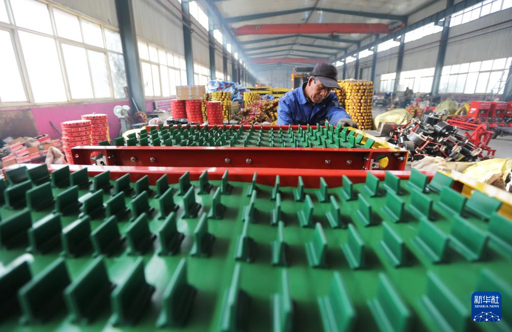 2月21日,工人在甘肃省定西市一家农机制造企业组装农机。