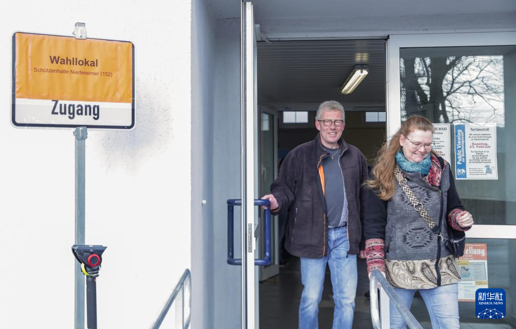 2月23日,在德国北莱茵-威斯特法伦州阿恩斯贝格,选民投票后离开投票站。