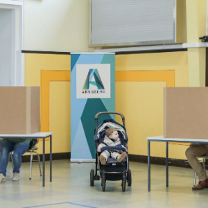 2月23日,在德国北莱茵-威斯特法伦州阿恩斯贝格,选民在一处投票站投票。