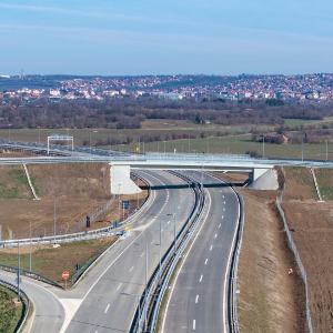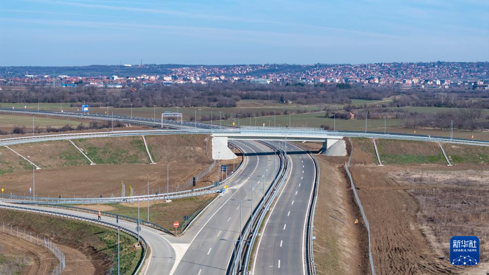 这是2月22日在塞尔维亚拍摄的中企承建的“多瑙走廊”快速路项目路段(无人机照片)。