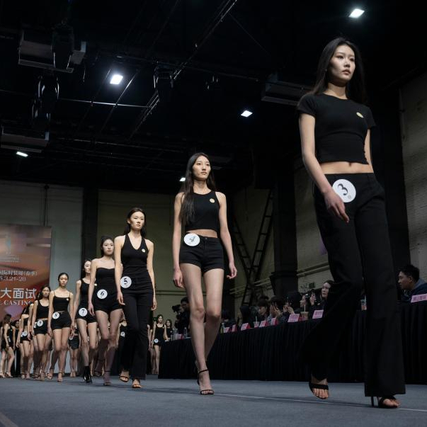 2月25日,在北京798艺术中心举办的2025中国国际时装周(春季)模特大面试上,模特在走台步。