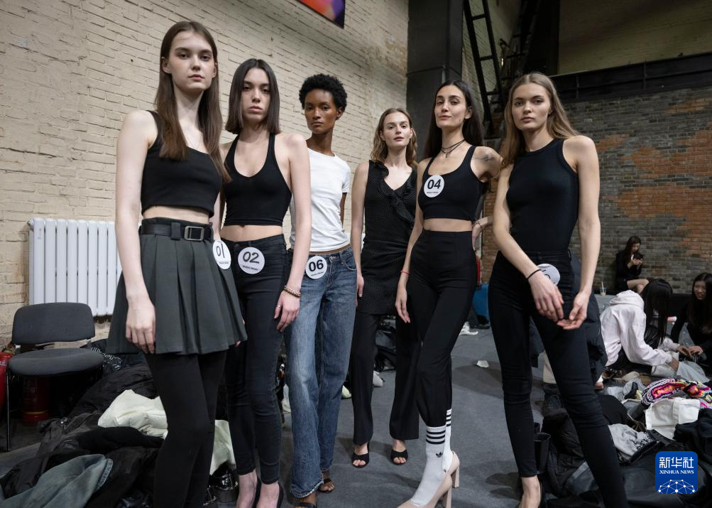 2月25日,在北京798艺术中心举办的2025中国国际时装周(春季)模特大面试上,外籍模特等候上场时合影。