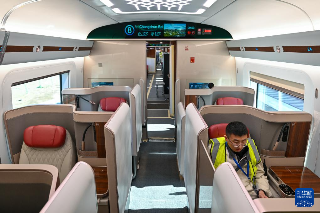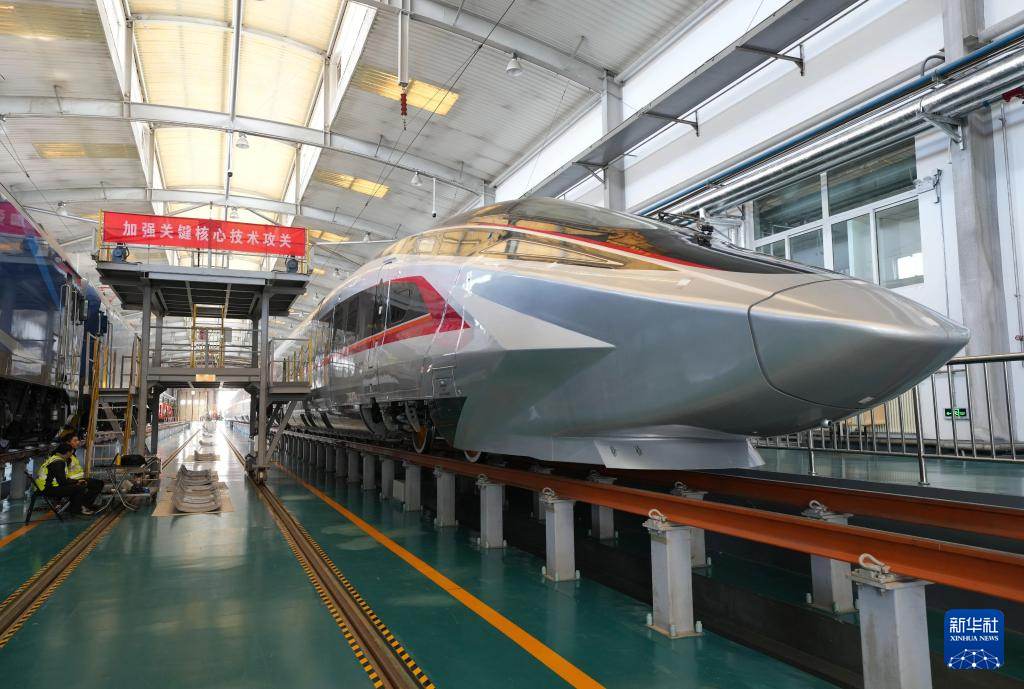 2月25日,工作人员在铁科院国家铁道试验中心对CR450动车组样车进行试验验证。