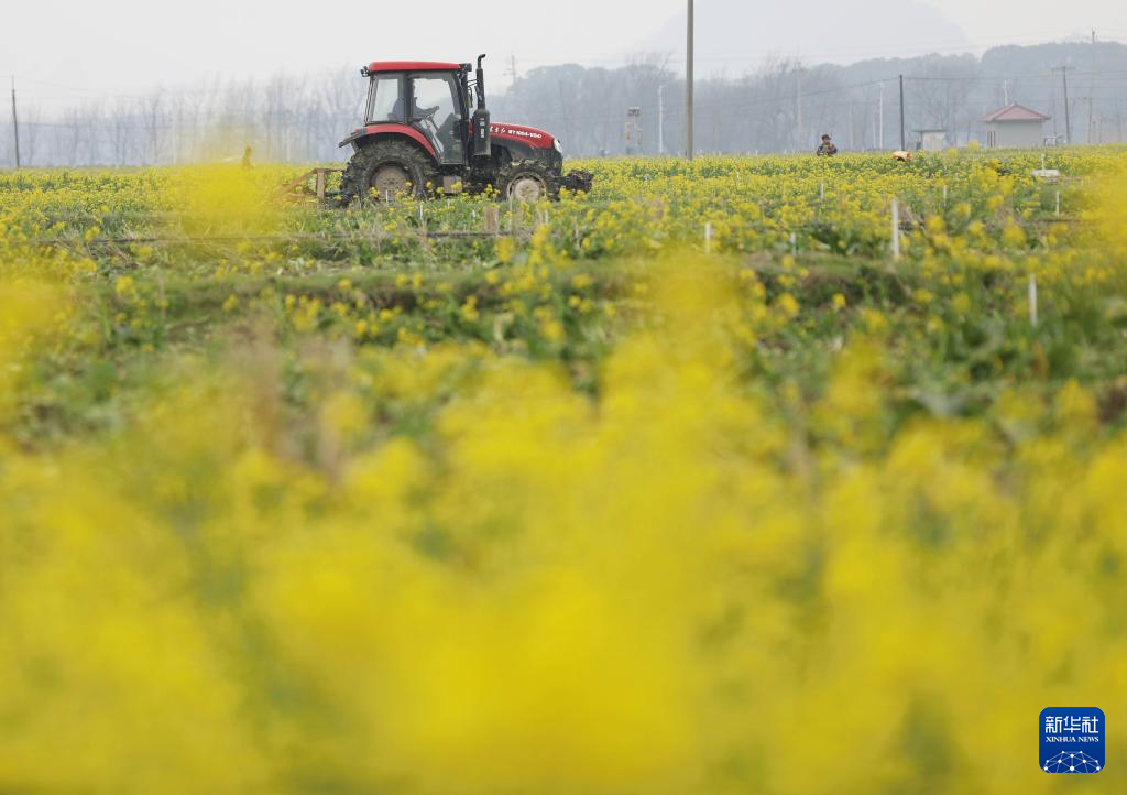 2月24日,在湖南省永州市道县营江街道岗下村,农机手驾驶拖拉机在翻耕农田。