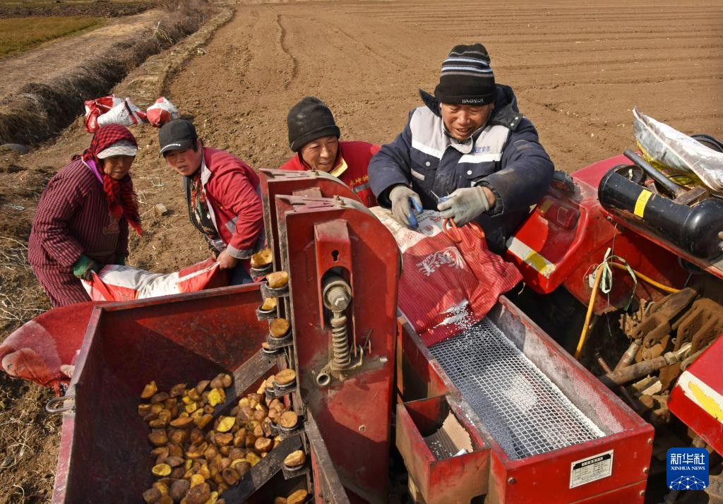 2月25日,山东省青岛胶州市胶东街道斜沟崖村村民在种植马铃薯。