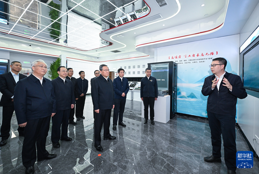 2月25日,中共中央政治局常委、国务院总理李强到中国电信、中国联通、中国移动所属企业调研科技创新工作。这是李强在中国电信天翼云科技有限公司,听取天翼云建设、量子通信发展等介绍。