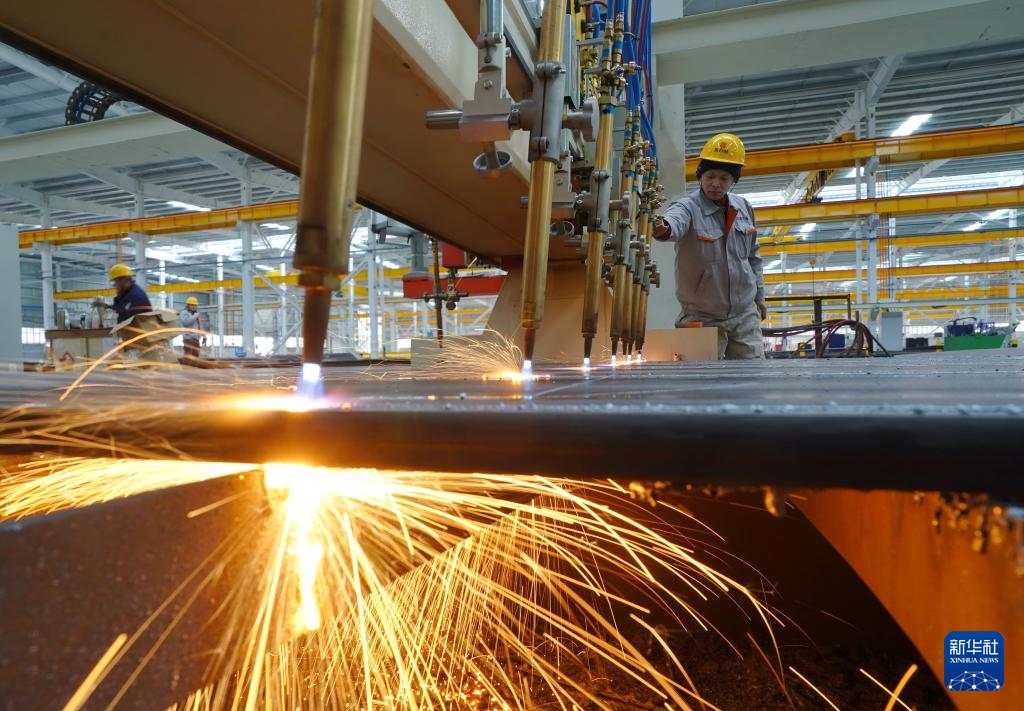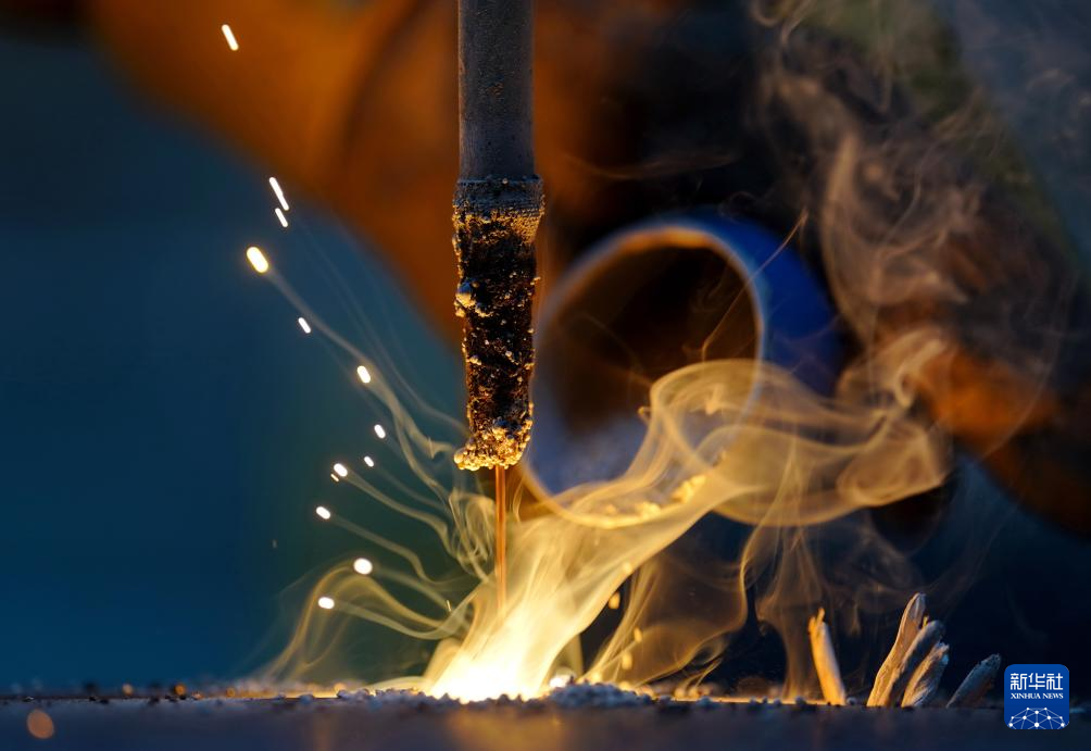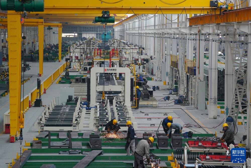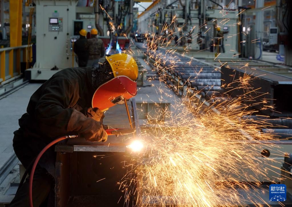 2月27日,河北省唐山市芦台经济开发区一家集成房屋制造企业的焊接设备在工作中。