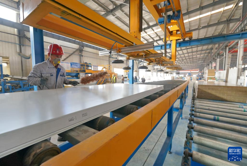 2月27日,河北省唐山市芦台经济开发区一家集成房屋制造企业的智能切割设备在工作中。