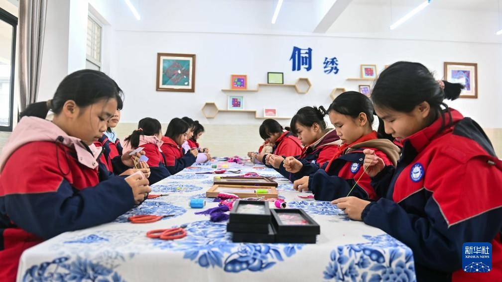 新学期伊始,广西三江侗族自治县充分利用地方文化资源,常态化、沉浸式开展非遗进校园活动,丰富少儿的课余文化生活,弘扬中华优秀传统文化。