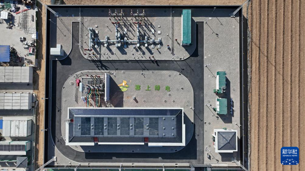 宁夏银川原隆110千伏变电站全景(无人机照片,2月27日摄)。