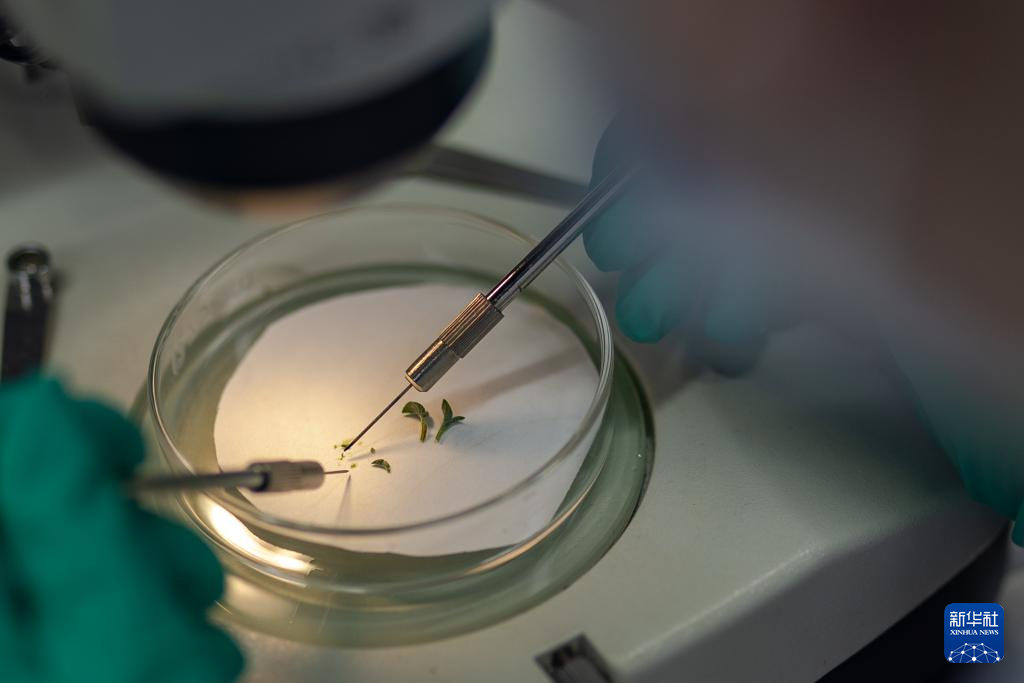 2月26日,在重庆市巫溪县文峰镇脱毒马铃薯原原种生产基地,技术人员在马铃薯繁育中心的无菌操作室工作。