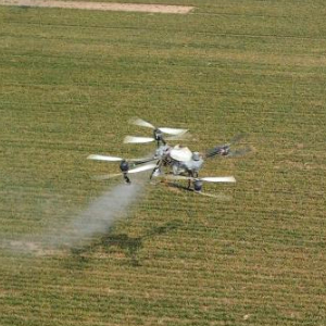 2月27日,植保无人机在山东省新泰市禹村镇作业。