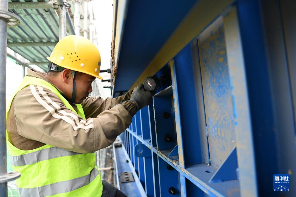 2月28日,中铁二十二局施工人员在西安东站进行施工建设。