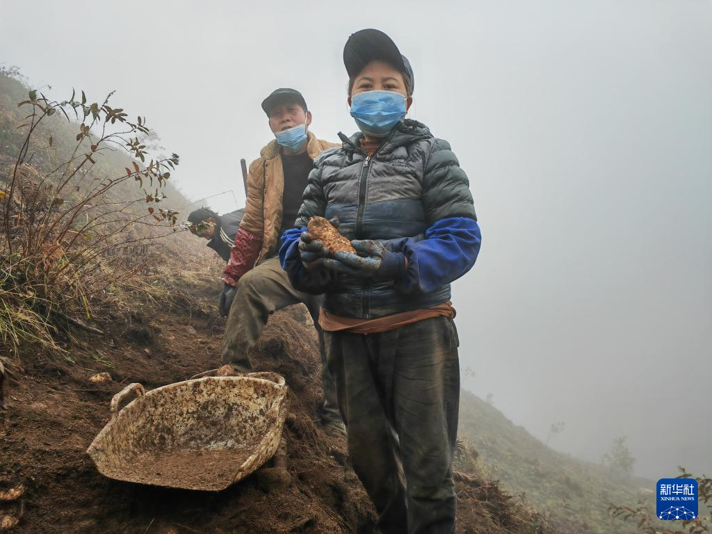 2025年1月4日,云南省昭通市彝良县荞山镇的村民在采收天麻。