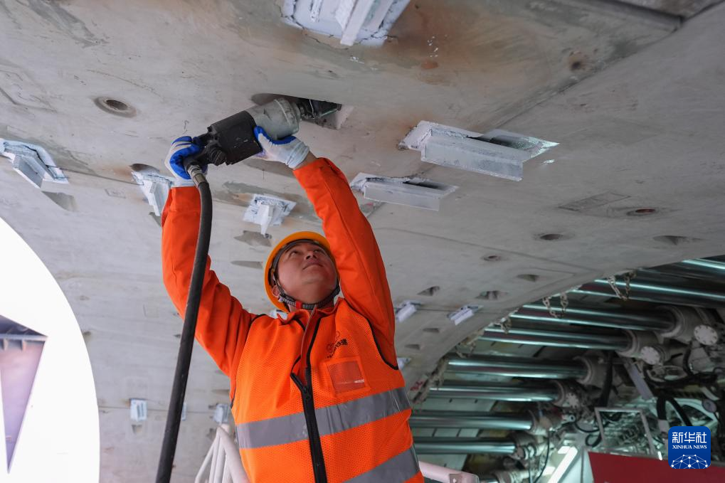 2月28日,中铁十四局建设者在浙江绍兴群贤路西延萧山南秀路一期Ⅱ标工程隧道“临空号”盾构机内进行管片拼装作业。