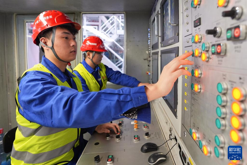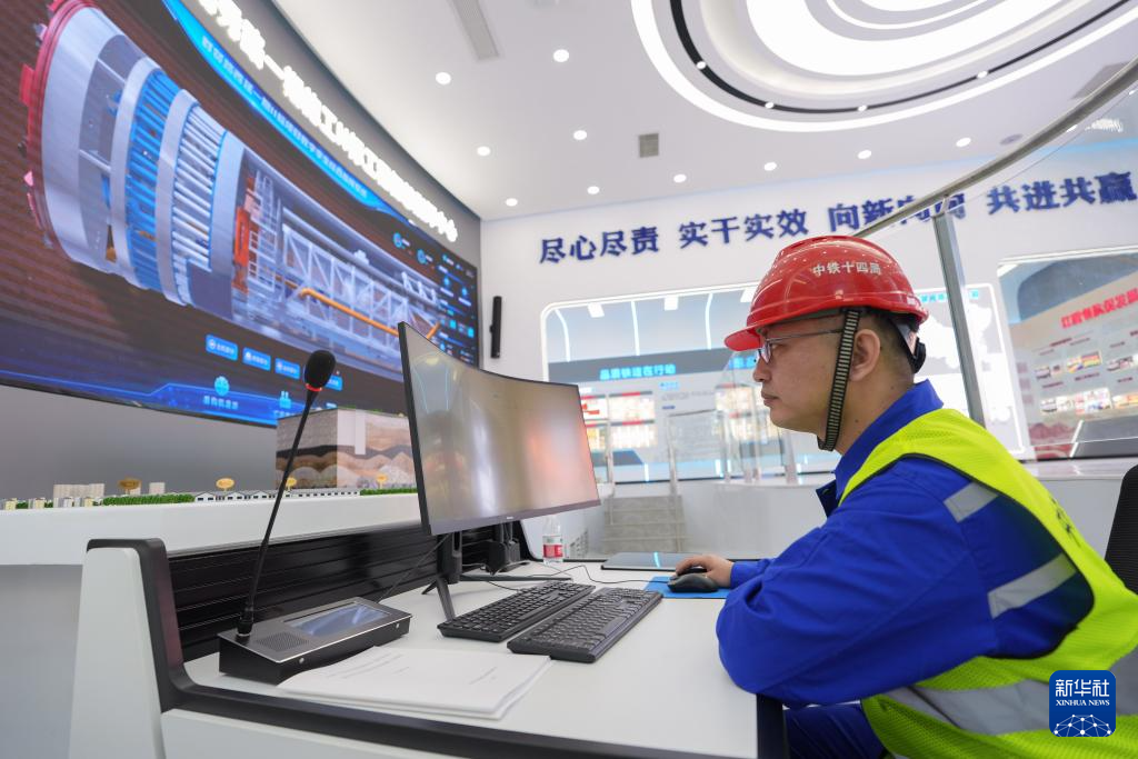 2月28日,中铁十四局技术人员在浙江绍兴群贤路西延萧山南秀路一期Ⅱ标工程隧道“临空号”盾构机操作室操控设备。
