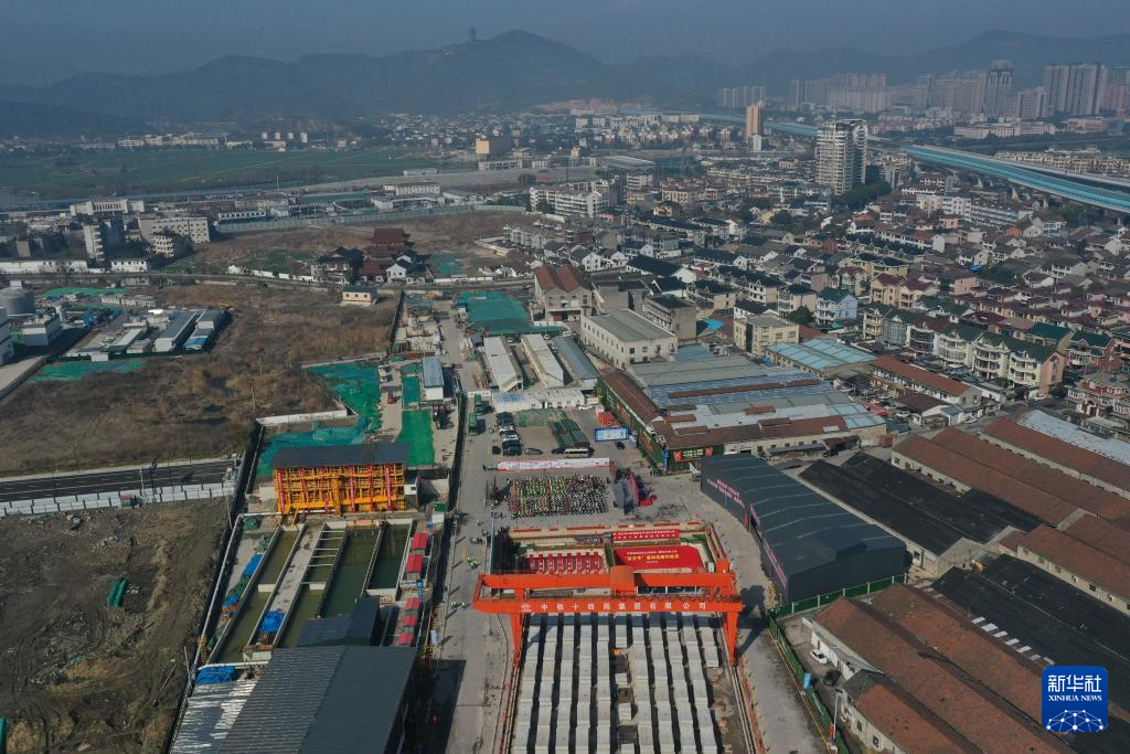 2月28日在浙江省绍兴市柯桥区拍摄的群贤路西延萧山南秀路一期Ⅱ标工程盾构施工现场(无人机照片)。