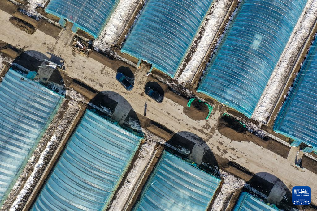 3月1日拍摄的备土作业中的黑龙江北大荒农业股份有限公司友谊分公司大棚(无人机照片)。