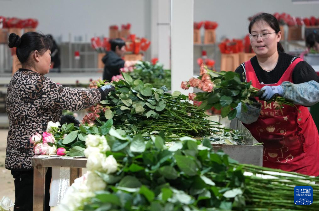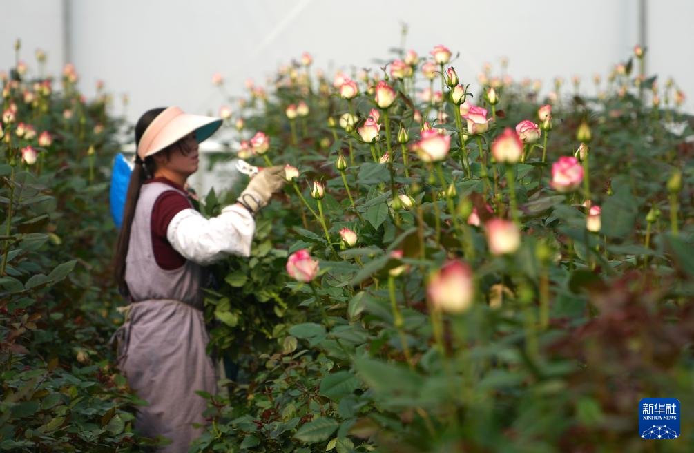 早春时节,山东省新泰市楼德镇大棚玫瑰种植园的工作人员忙着采摘、加工、装运玫瑰鲜切花,供应各地市场。近年来,新泰市楼德镇大力发展大棚玫瑰种植产业,目前可年产玫瑰鲜切花1亿多枝,吸纳当地村民就业600余人。