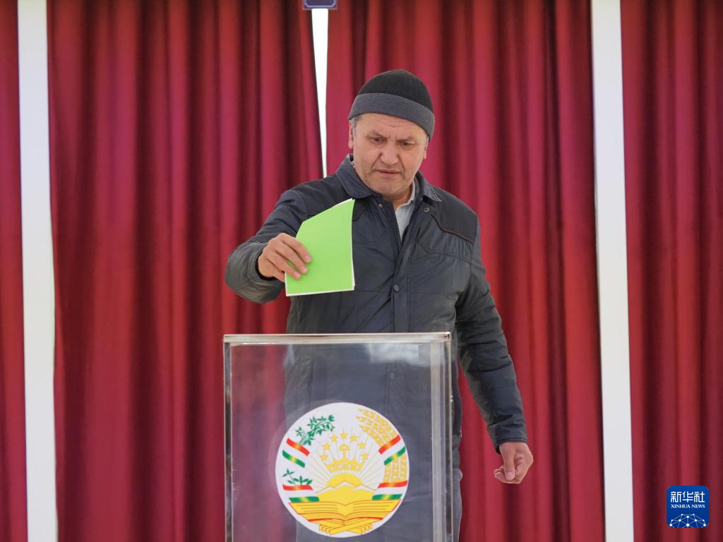 3月2日,塔吉克斯坦总统拉赫蒙在杜尚别参加议会下院选举投票。