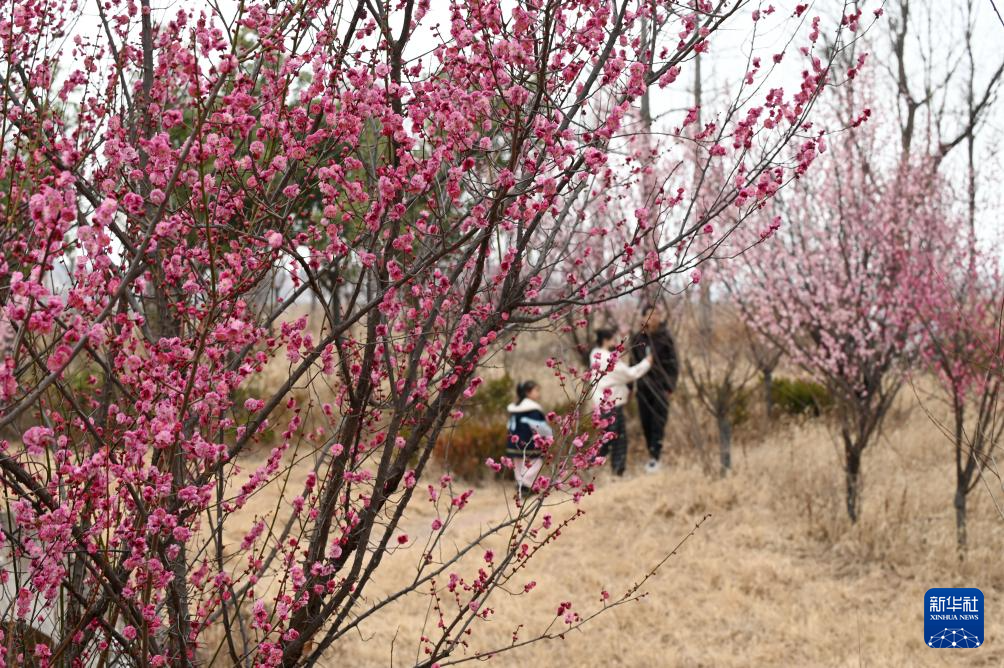 3月1日,游客在河南省沁阳市王曲乡一处乡村游园赏梅。