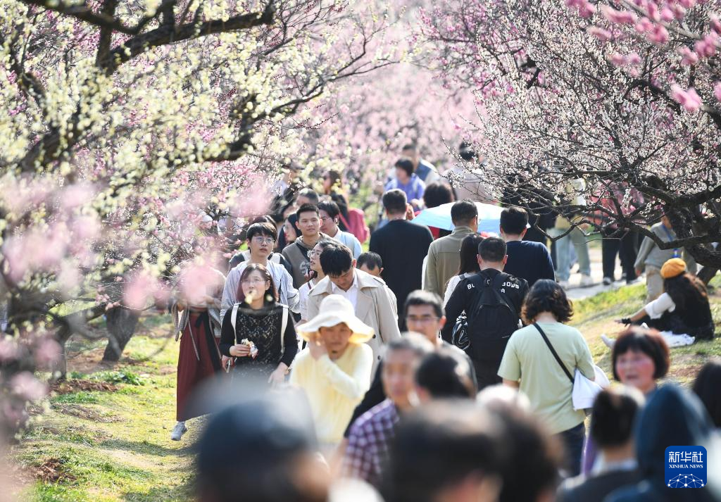 3月1日,众多游客在南京梅花山景区赏花游玩。