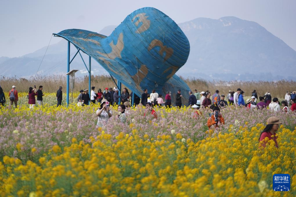 3月2日,游客在云南省昆明市官渡区福保村千亩油菜花田游玩。