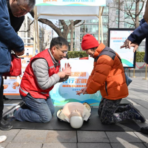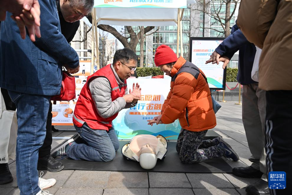 3月3日,志愿者向市民演示如何进行心肺复苏。