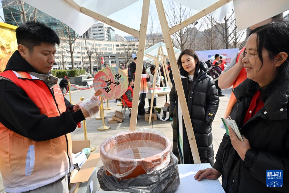 3月3日,志愿者为市民制作漆扇。