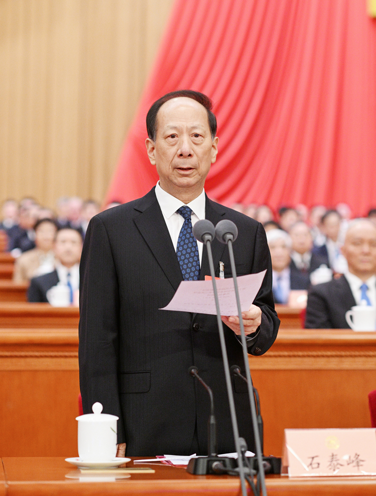 3月4日下午,中国人民政治协商会议第十四届全国委员会第三次会议在北京人民大会堂开幕。这是全国政协副主席石泰峰主持开幕会。