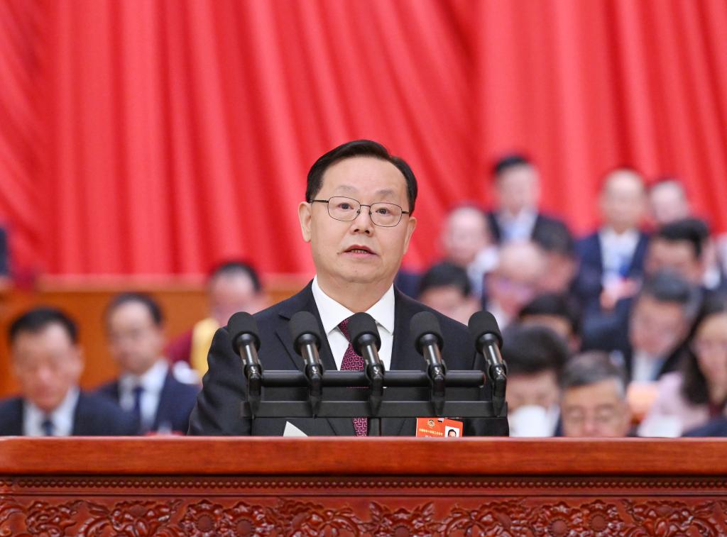 3月4日下午,中国人民政治协商会议第十四届全国委员会第三次会议在北京人民大会堂开幕。这是全国政协副主席蒋作君代表政协第十四届全国委员会常务委员会,向大会报告政协十四届二次会议以来的提案工作情况。