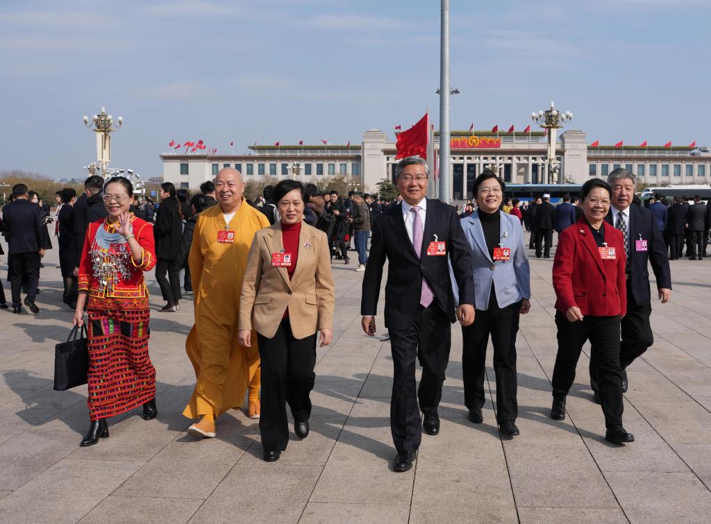3月4日下午,中国人民政治协商会议第十四届全国委员会第三次会议在北京人民大会堂开幕。这是全国政协委员走向会场。