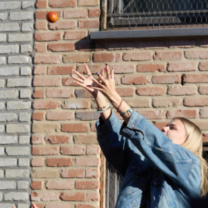 3月4日,在比利时南部小镇班什,一名游客在“血橙盛典”上接抛来的血橙。