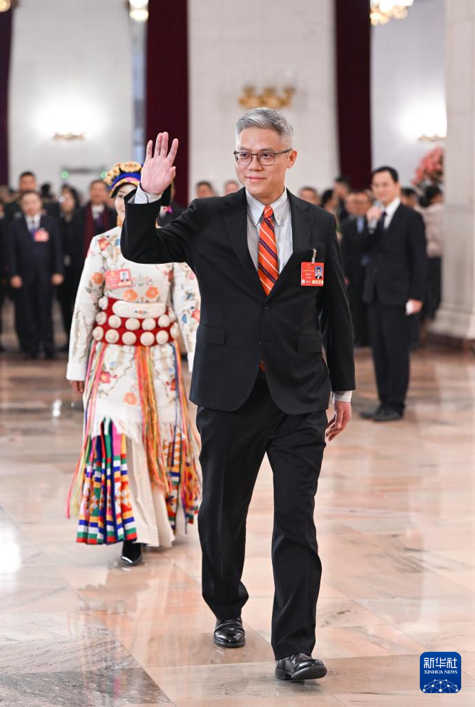 3月5日,第十四届全国人民代表大会第三次会议首场“代表通道”集中采访活动在北京人民大会堂举行。这是接受采访的全国人大代表入场。