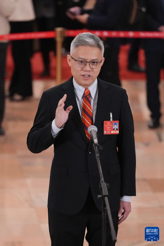 3月5日,第十四届全国人民代表大会第三次会议首场“代表通道”集中采访活动在北京人民大会堂举行。这是全国人大代表周云杰接受媒体采访。