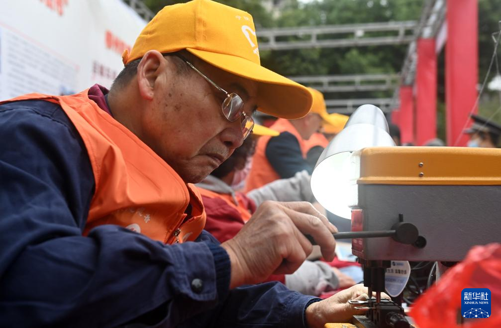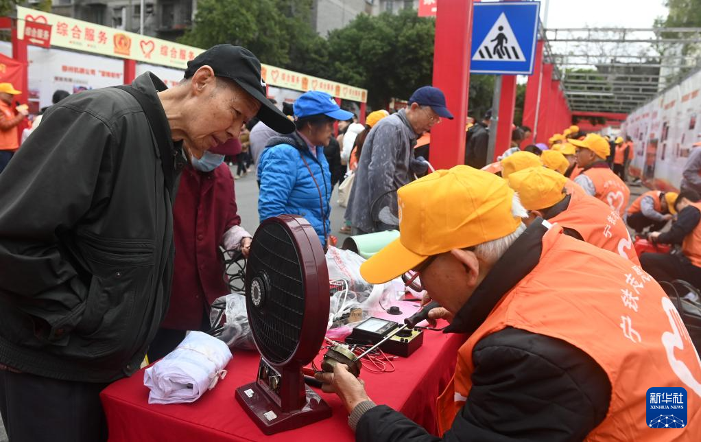 3月5日,在广西柳州市革新路“雷锋街市”,志愿者在为市民维修电器。