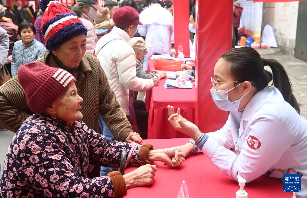 3月5日,在广西柳州市革新路“雷锋街市”,志愿者在为市民义诊。