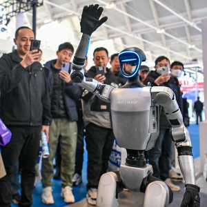 3月6日,在国家会展中心(天津),宇树科技带来的一款人形机器人现场表演。
