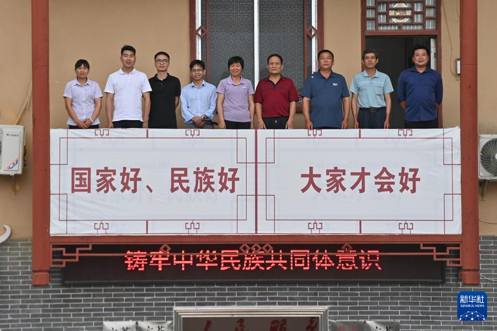 在广西梧州市苍梧县六堡镇山坪村,村党支部书记、村委会主任祝雪兰(左五)和同事们合影(2023年6月7日摄)。十多年来,作为六堡茶制作技艺自治区级代表性传承人,祝雪兰办起“茶园讲堂”,推广传统制茶技艺,带领村民成立多家六堡茶专业合作社,并采用“党支部+合作社+农户”的模式,种茶制茶售茶,带动周边各族群众共同发展六堡茶种植产业,助力群众增收致富。