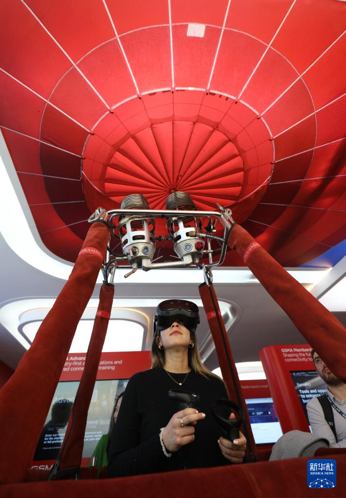 3月6日,在西班牙巴塞罗那举行的2025年世界移动通信大会上,一名女子体验头显设备。