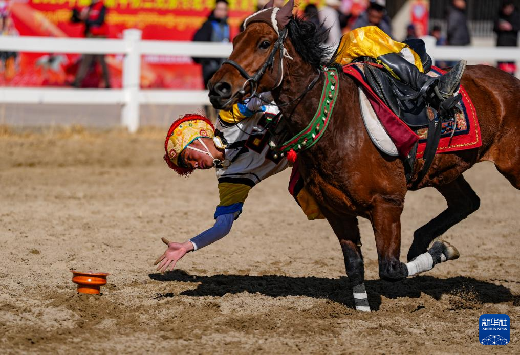当日,2025年藏历新年初三民族传统马术表演暨民族赛马活动在拉萨市北郊赛马场举行。