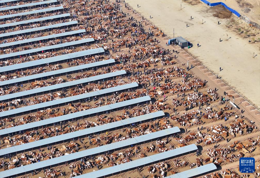 当日,内蒙古通辽市科尔沁左翼后旗伊胡塔牛市迎来交易日,来自辽宁、吉林、河北、山东、贵州等地的买家和经纪人云集牛市。