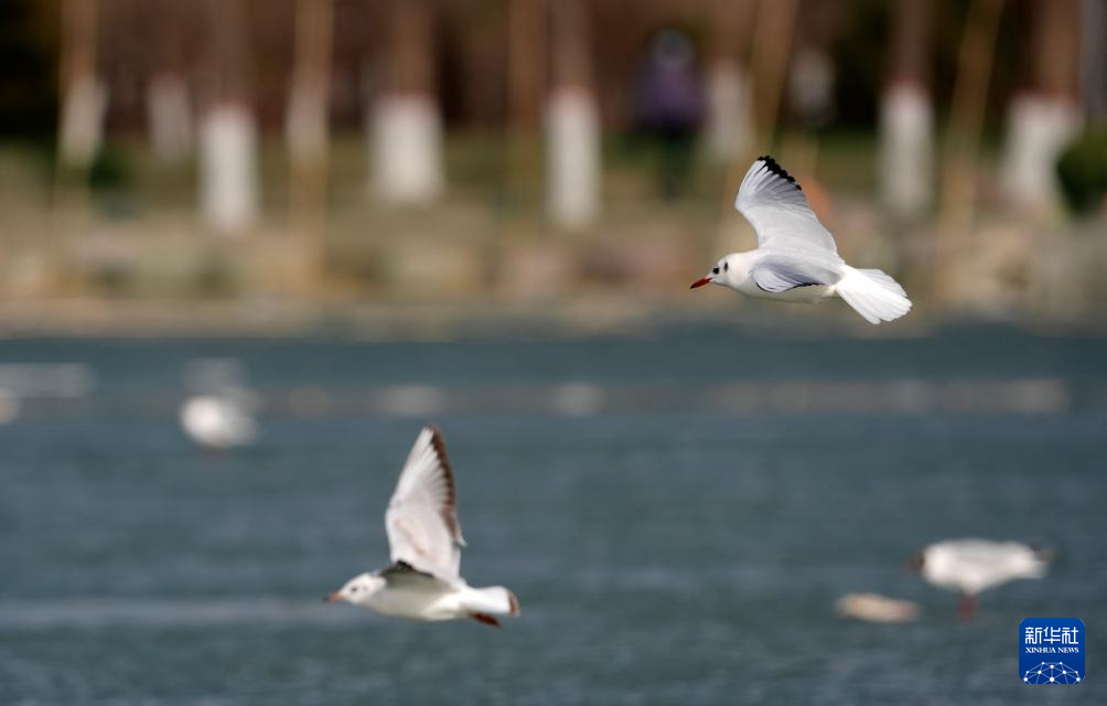 近日,宁夏银川市气温回升,湖面冰雪消融,各湖泊湿地陆续迎来红嘴鸥、遗鸥等候鸟前来栖息、觅食。
