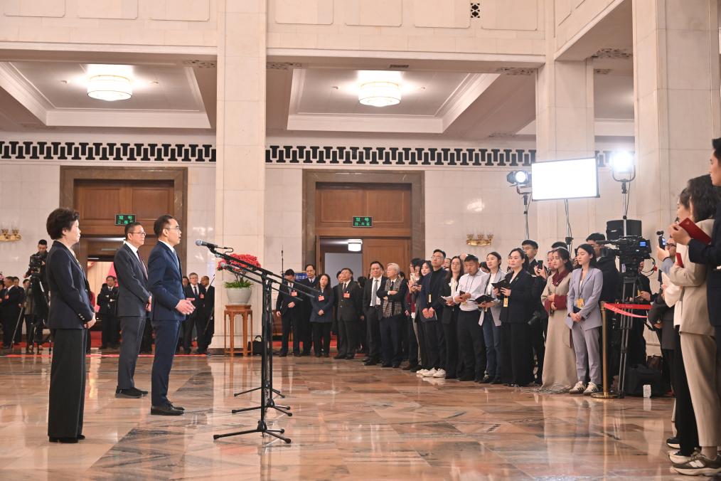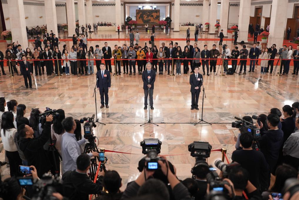 3月10日,全国政协十四届三次会议第三场“委员通道”集体采访活动在北京人民大会堂举行。