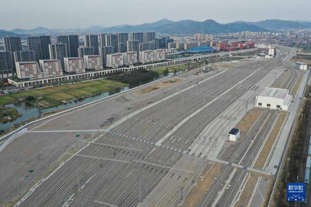 3月11日无人机拍摄的宁波动车所,投运后可同时满足40组动车存放检修。