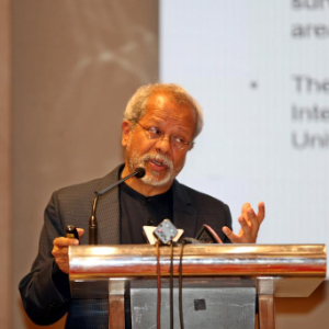 3月11日,孟加拉国智库选择研究中心执行主任伊姆提亚兹在首都达卡举办的《2024年中国在孟加拉国国家形象》民意调查发布会上讲话。