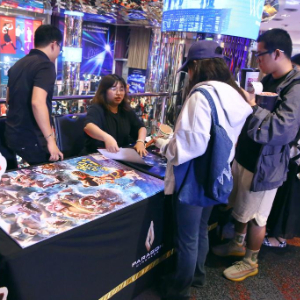 3月12日,在泰国曼谷暹罗百丽宫,参加《哪吒2》首映活动的观众排队领取电影海报。