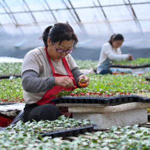 3月13日,在位于运城市新绛县泉掌镇王守庄村的山西瑞恒农业股份有限公司蔬菜高新技术示范园内,工作人员在嫁接种苗。