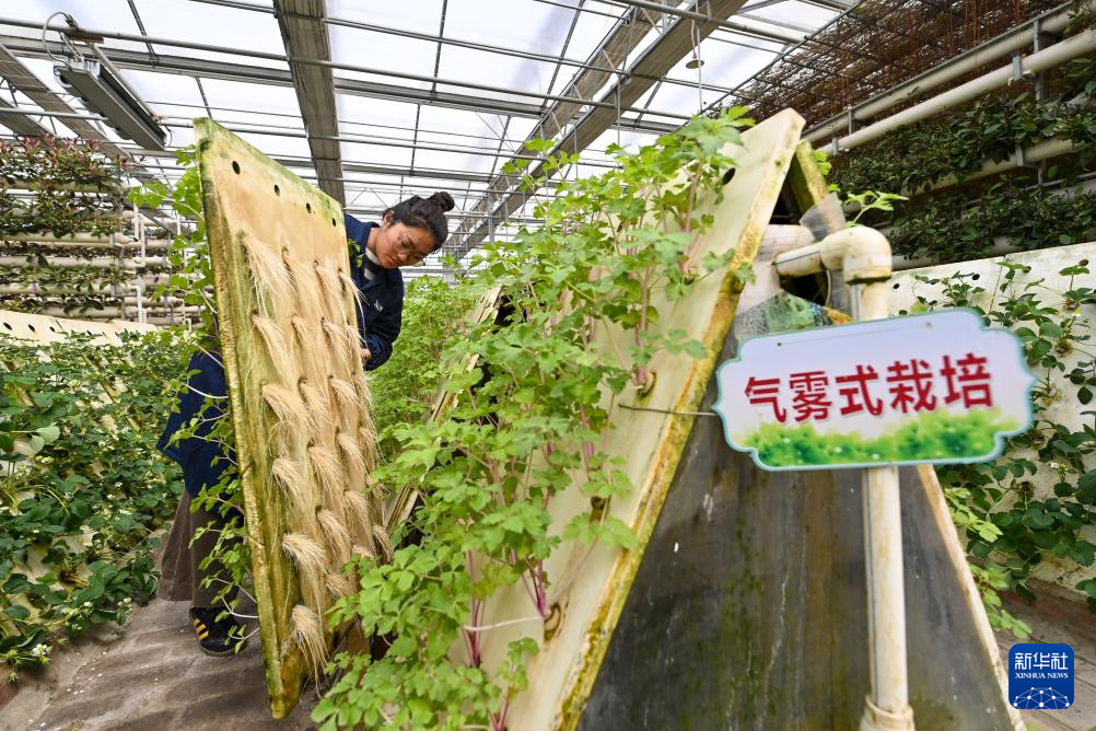 3月13日,在位于运城市新绛县泉掌镇王守庄村的山西瑞恒农业股份有限公司蔬菜高新技术示范园内,工作人员查看蔬菜根系生长情况。