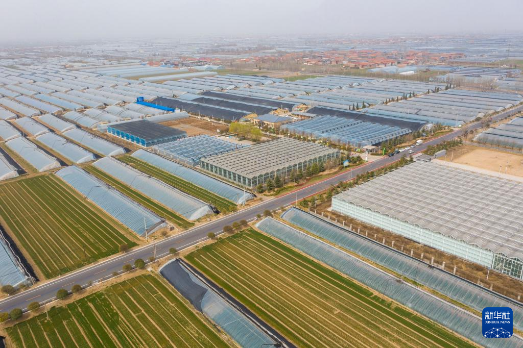 这是3月13日拍摄的位于运城市新绛县泉掌镇王守庄村的蔬菜基地一景(无人机照片)。